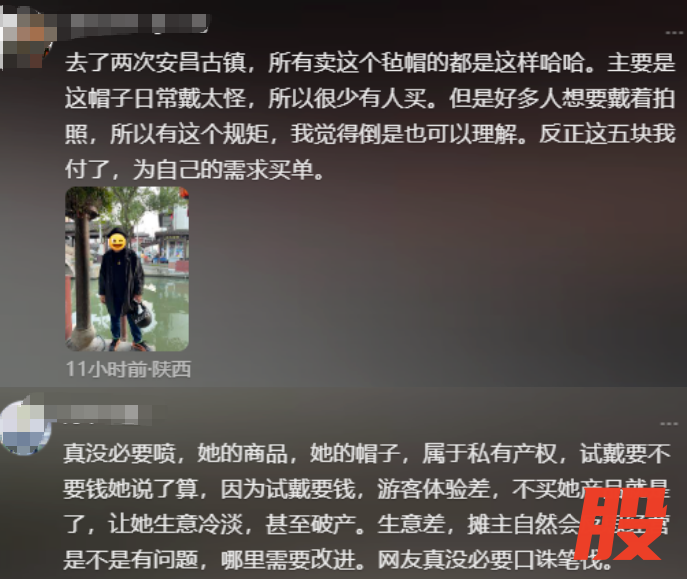 12月2日,演员洪剑涛在社交平台发视频称,自己在浙江绍兴安昌古镇试戴一下帽子要5元,不买不让试戴。