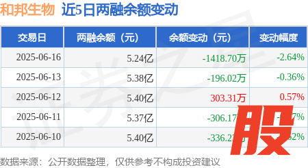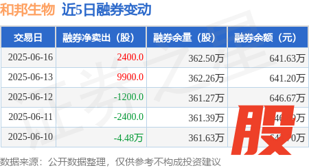本站消息生讯网,6月16日,和邦生物(603077)融资买入720.06万元,融资偿还2124.1万元,融资净卖出1404.05万元,融资余额5.17亿元。