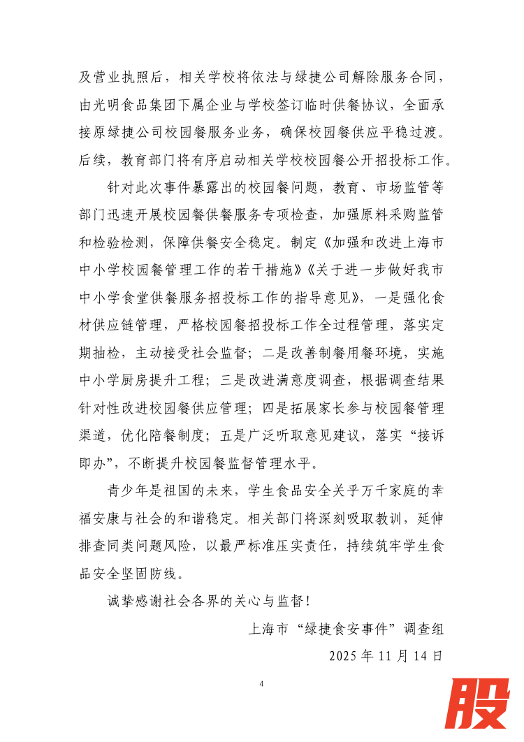 据报道,11月14日富才配资,上海市市场监督管理局发布绿捷食安事件情况通报称,已查明事件经过和绿捷公司及相关人员违法犯罪事实,拟依照法定程序吊销绿捷公司的食品经营许可证及营业执照,公司实际控制人张某华等8名责任人已被依法执行逮捕。